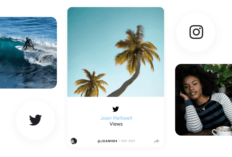 Connect your social accounts and hashtags from Instagram, TikTok, Facebook, YouTube, X/Twitter and more. Curator automatically collects posts, photos and videos into a single feed you control.