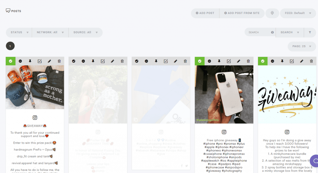 Once your source is connected, you can start curating. You can allow all posts to appear automatically or require manual approval.