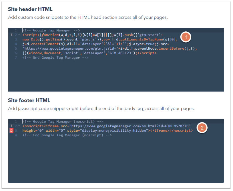 o edit the header or footer HTML, log in to your HubSpot account → navigate to Website > Pages → select your domain → open the Header HTML and paste the code.