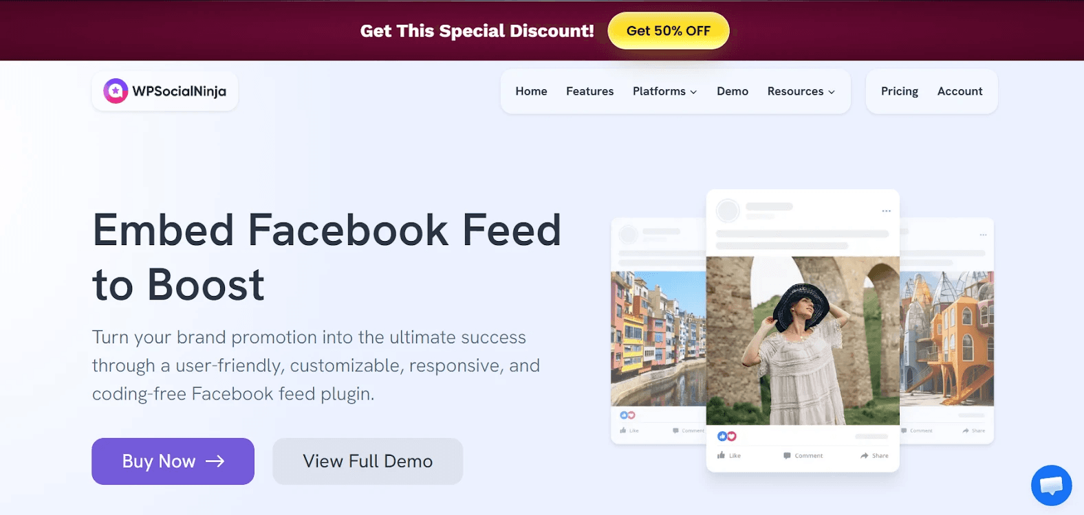 Juicer is another option for a Facebook widget platform. Note that on the free plan, they do inject large juicer ads into your feed so if you are hoping to use a free option or you want to test it out for free first know that you will have their branding on your website.