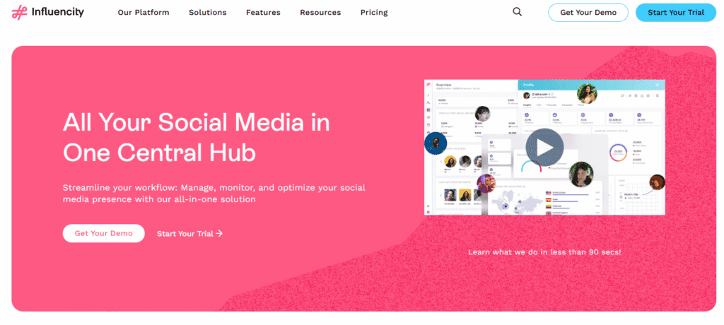 Influencity offers a full-suite influencer marketing platform while also integrating social media management and listening tools. Unlike Grin, which focuses mainly on managing influencer relationships and campaigns, Influencity combines influencer discovery, campaign management, reporting, and social media monitoring in one hub.