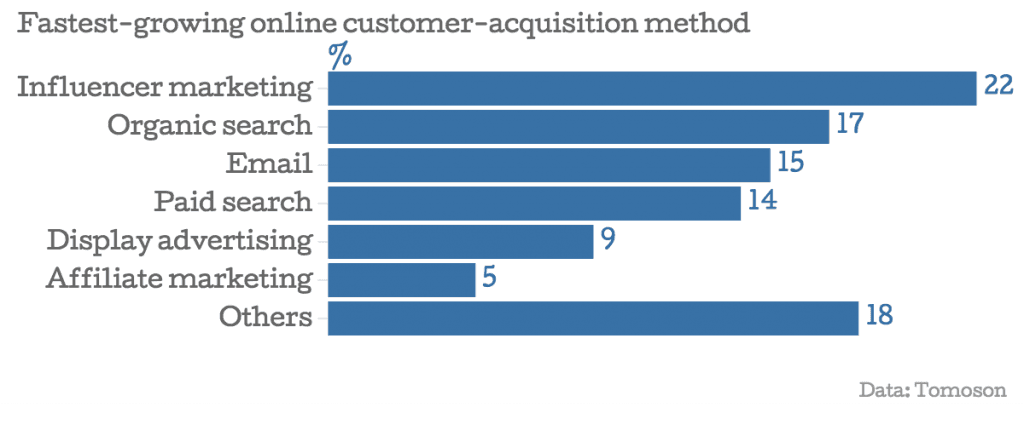 This explains why influencer marketing is one of the fastest-growing online customer acquisition methods.