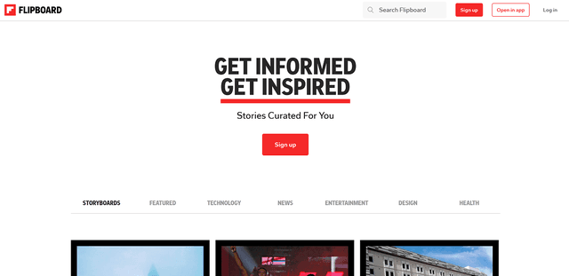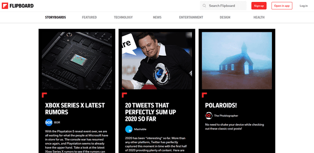 Flipboard is well known as a site where consumers can follow certain topics to get their news in an easy-to-read format. The app lets users scroll through the news like they were reading a Digital magazine. But the site also has features for publishers, brands, and businesses that let them aggregate content into a feed which their audience can follow. For example, a company can aggregate content related to an event to showcase different articles, posts, and videos.