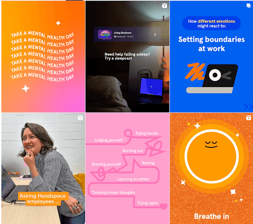 Headspace mixes calm visuals with short reels to keep the grid engaging.