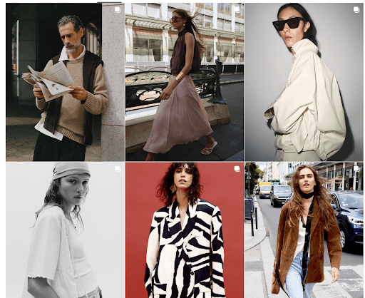 Zara uses storytelling grids to spotlight new collections in chapters.
