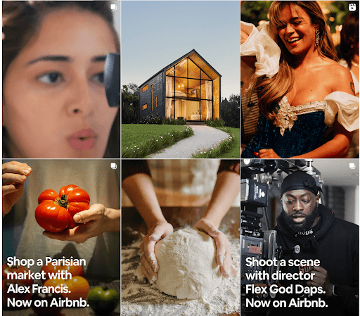 Airbnb combines user-generated photos with brand stories, creating feeds that feel authentic and aspirational.