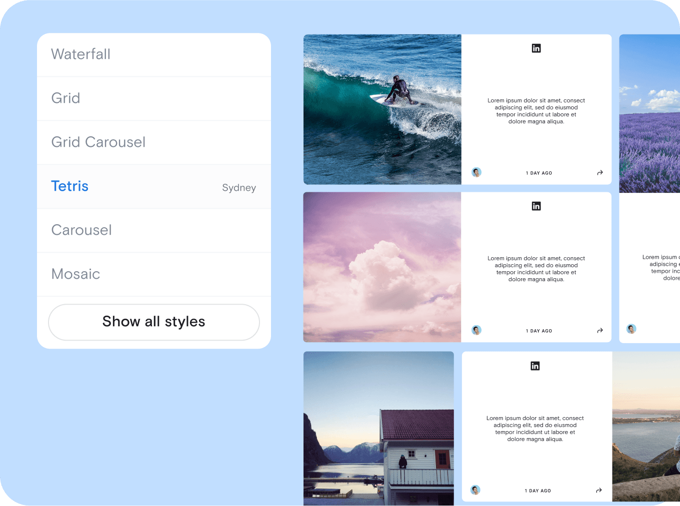 Yes, you can fully customize the look of your widget to match your website. Choose from over 20 layout templates, then adjust fonts, colors, spacing, and more. For full control, you can also add custom CSS. Your LinkedIn feed will blend in beautifully with your site’s design and branding.