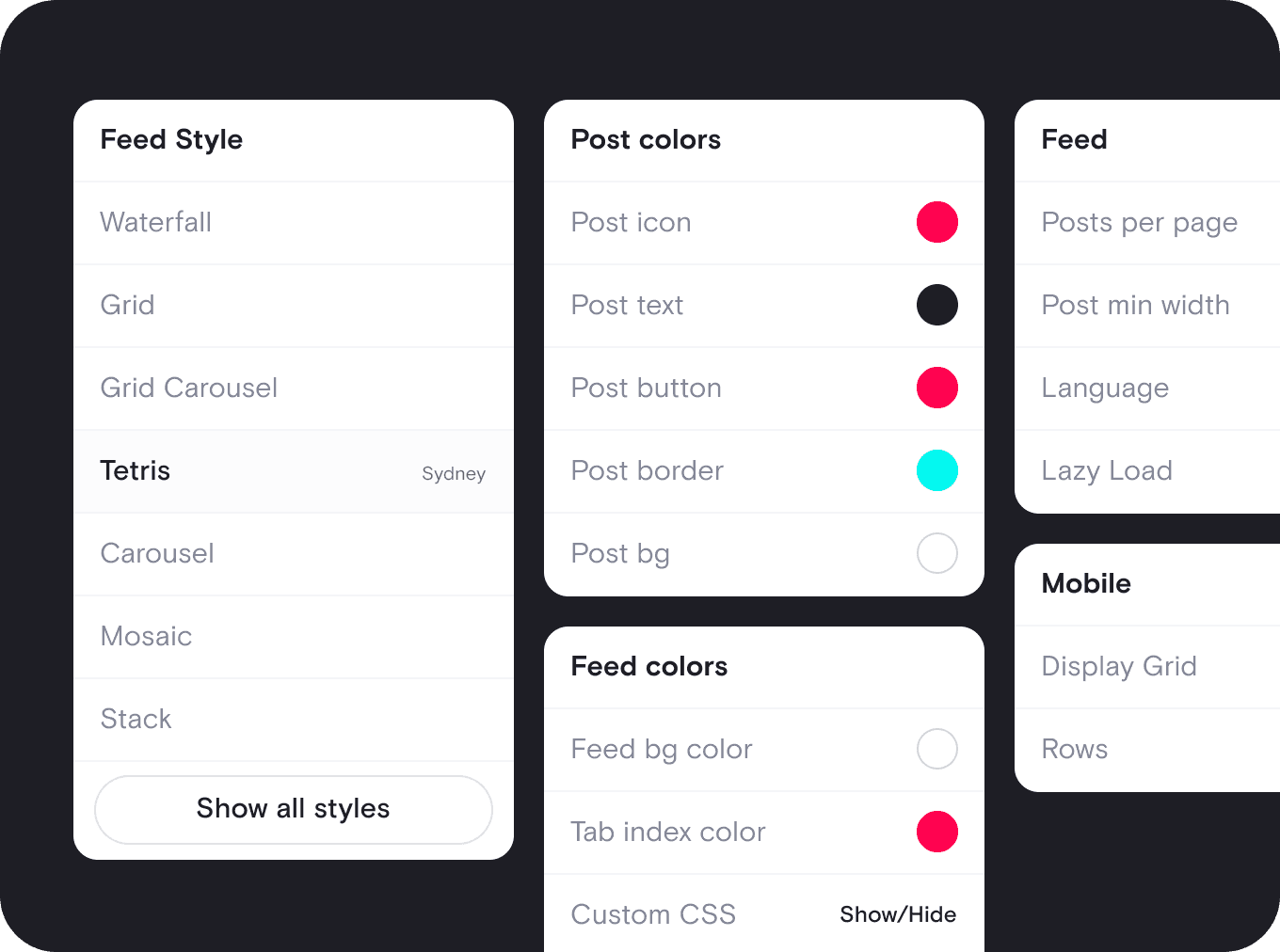 Choose from over 20 layout templates and personalize fonts, colors, spacing, and borders. Use custom CSS for full design control and ensure your TikTok widget blends seamlessly with your website.