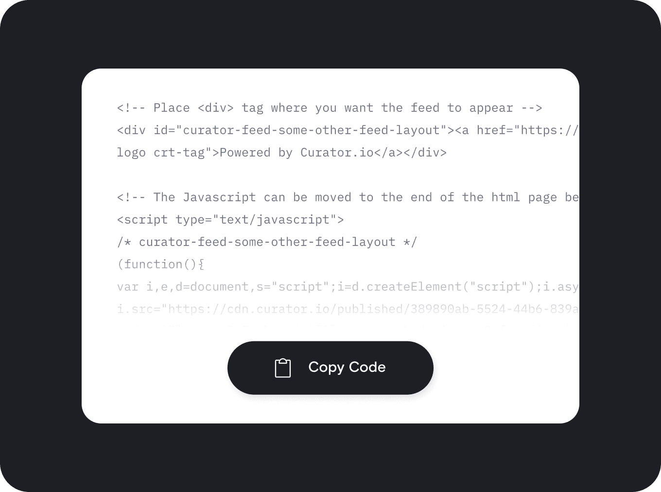 Once your feed looks the way you want, just copy and paste the embed code. It works perfectly on WordPress, Shopify, Wix, Webflow, and more, with no coding needed.