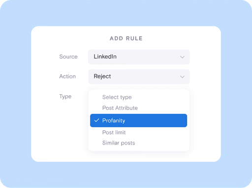 Take full control of your LinkedIn feed with flexible moderation tools. Set custom rules to filter content automatically or manually approve each post to ensure only your most impactful, on-brand content appears.